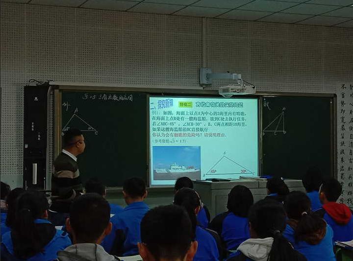 2018年12月3日下午第一节课,由数学教研组和健全人格课题组组织的案例研究课堂实录在录课室进行,这堂课由九年级数学组的刘远超老师主讲,内容三角函数的应用。本堂课的每个环节都注重培养学生数学素养和健全人格,每一个问题的解决过程都培养学生探究创新能力。数学组的全体老师和健全人格课题组的所有老师在五楼多媒体教室进行现场听课,并对这堂课进行交流讨论和评价。