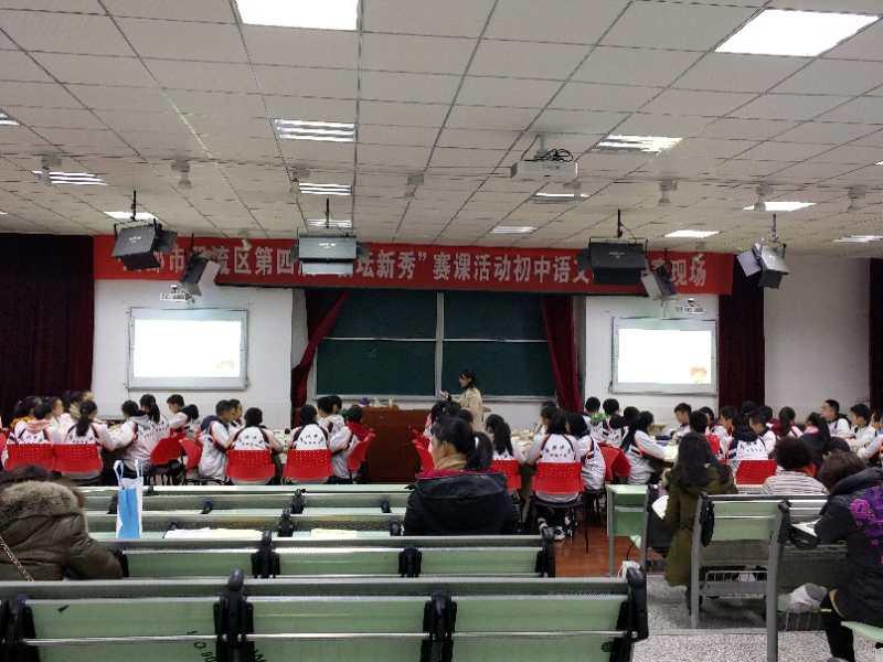 2018年12月20—21日, 成都市双流区第四届“教坛新秀”赛课活动初中语文学科决赛在棠湖中学实验学校如期举行。我校八年级语文组付丽莎老师,代表我校与来自其他学校十四名教师同台竞技。最终付丽莎老师以沉稳的课堂调控能力,创新的设计思路,火花碰撞般的教学生成,赢得了评委和观摩教师的一致认可,获得本次大赛一等奖。
