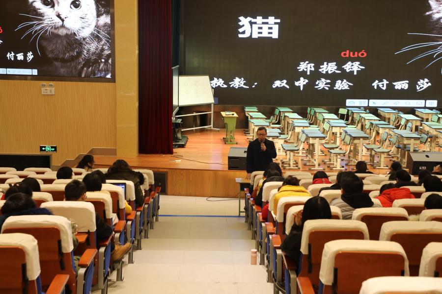 全校两百余位教师在学术厅认真聆听了李松林教授的题为《学科核心素养导向的深度教学》的专家讲座。李教授首先从学科核心素养的四大导向:聚焦核心,整体建构,深度理解,实践参与展开,深入剖析当前课堂的普遍问题缺乏深切的体验、深入的思考、深透的理解和深远的影响,即缺乏深度,从而导致学生有知识而没有力量,有知识而没有美德,有知识而没有学科核心素养。在此基础上,李教授提出“深度学习是学科核心素养发展的基本路径”的基本观点。并引导教师把握三个实践方向:触及心灵深处,深入学科本质,展开问题解决;抓住五个着力点:深层动机,切身体验,高阶思维,深度理解,实践创新。讲座中,李松林教授极力倡导“让学生在问题解决中学习”,引导教师通过核心整合、高阶思维、综合实践等手段组织教学。李教授诙谐幽默的举例,深入浅出的说理叩击着教师们的心灵,也赢得了阵阵雷鸣般的掌声。