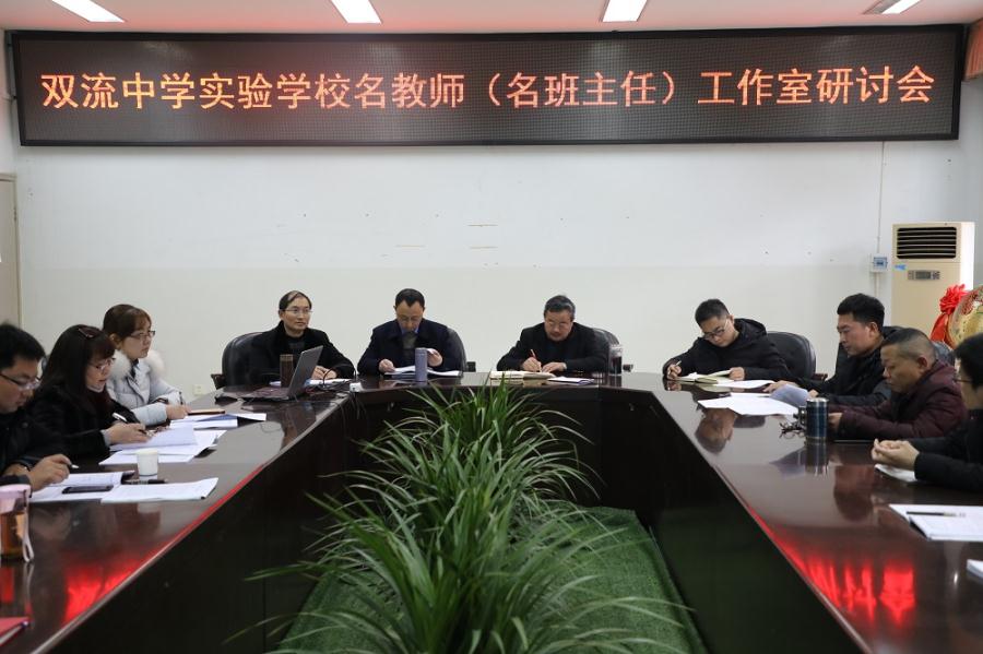 2019年2月19日下午,双流中学实验学校名教师(名班主任)工作室研讨会在三会议室召开。会议由教科室文传福主任主持,与会领导有高志文校长、罗晓章校助、陈国华主任,参加会议的有校名师工作室各位导师和各工作室成员。