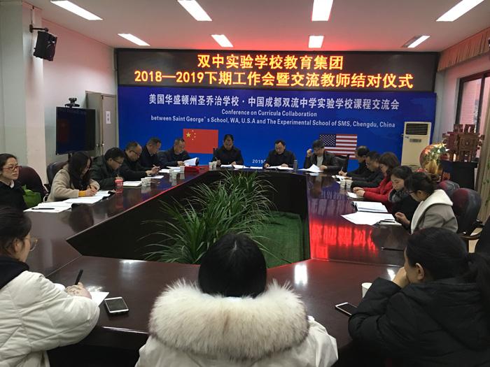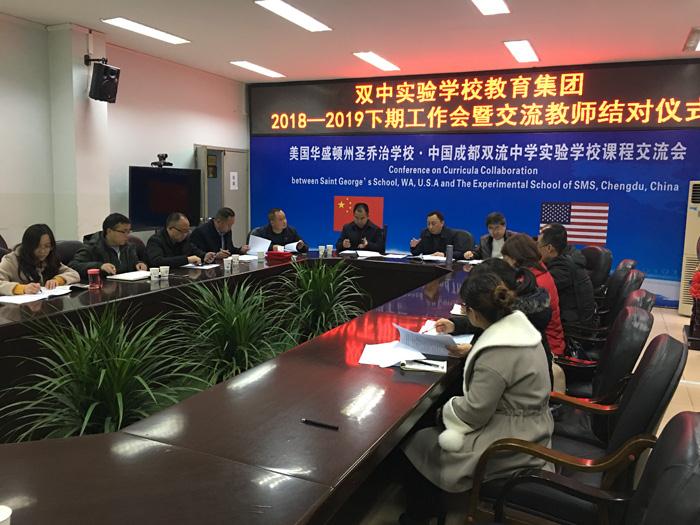 3月7日,双中实验学校教育集团2018—2019学年度下期工作会在双中实验学校第三会议室举行,双中实验学校、九江初中、彭镇初中、协和初中、黄龙溪学校的校长、副校长和教育集团管委会各部门干部参加了会议,双中实验学校校长助理罗晓章主持会议。会议主要内容有:1、 通报《双中实验教育集团2018—2019下期工作计划》。2、龙头校校长助理罗晓章安排布置本期集团工作。3、双中实验校与彭镇初中教师结对仪式。4、集团科研管理部文传福主任对结对教师交流工作作要求。5、听取成员学校对集团发展的意见和建议。