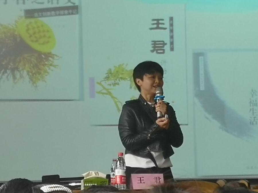 23日下午下午由北京清华附中特级教师王君老师带来了群文阅读展示课《春天会不会生气》。真正的语文课不仅让学生动情,而且要让学生动思,享受到智性的快乐。这节课上,学生的思维被充分激活,那真是“风乍起,吹皱一池春水”。王君老师新颖独特、富有个性、启发性的示范课和讲座在经久不息的掌声中结束。