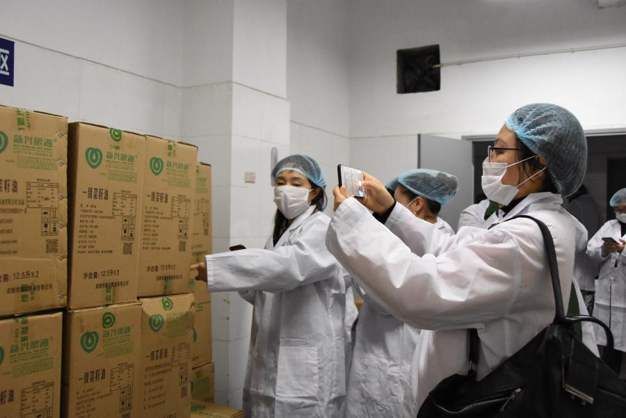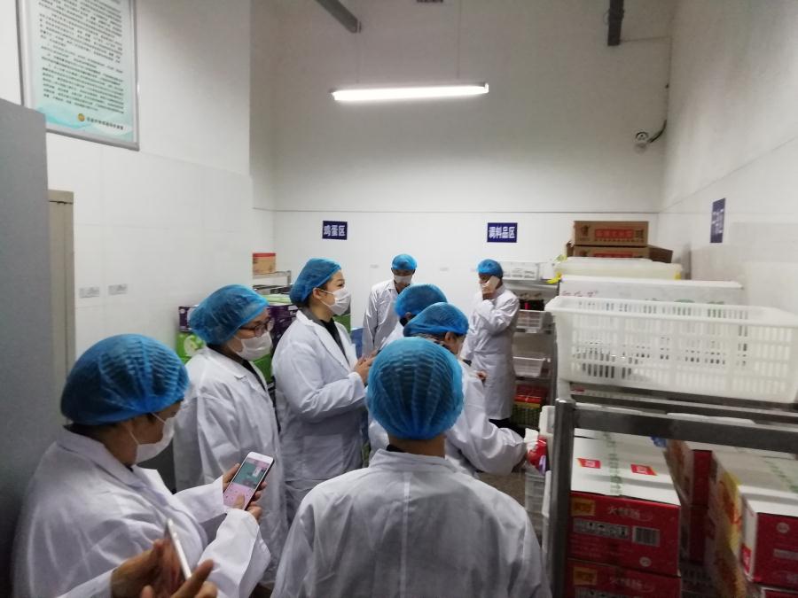 初中家长在副食库参观检查。