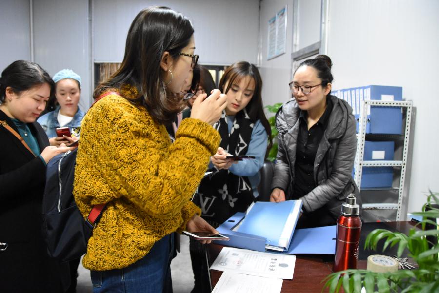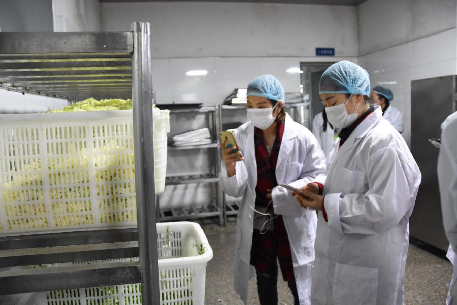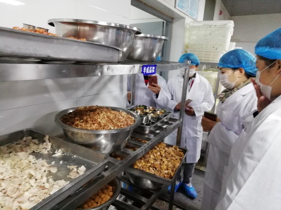 初中家长在参观检查半成品食品。
