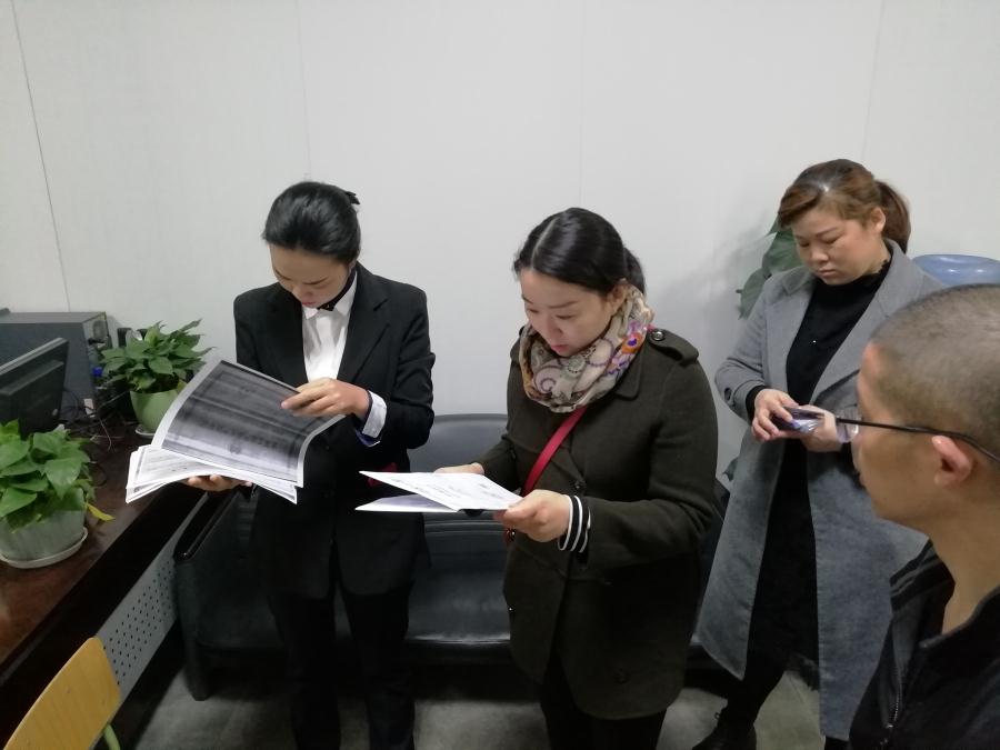 初中家长在食堂事务室检查文件资料。