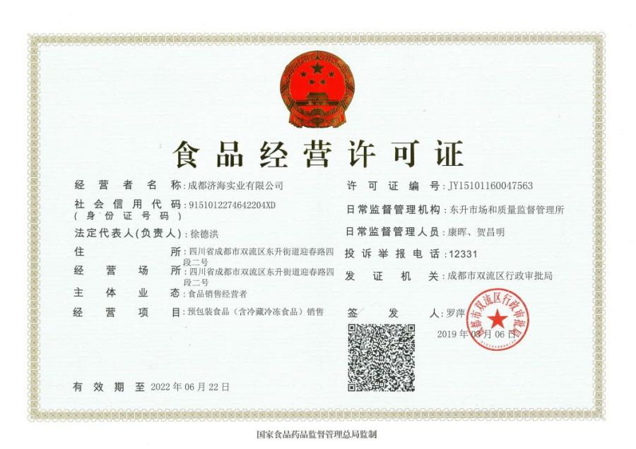 配送公司食品经营许可证。