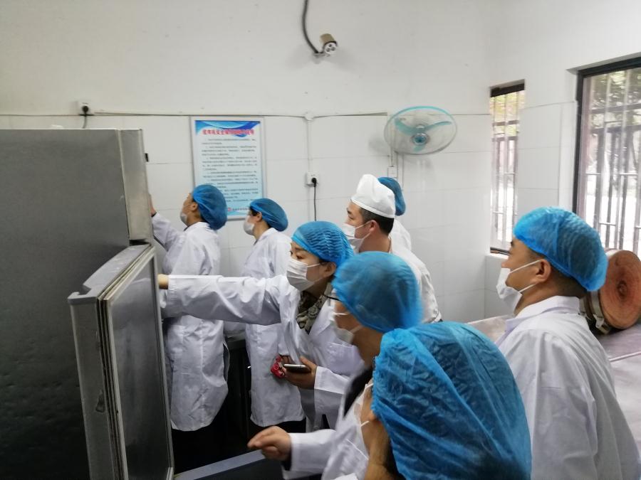 初中家长在肉类加工间参观检查。