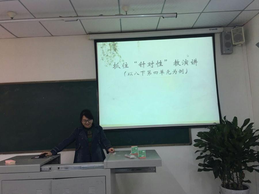 付丽莎老师的专题讲座题目为《抓住“针对性”教演讲》,分为三个大板块:确立演讲教学的核心点;着眼普遍性,围绕针对性,优化活动性;谈自己的教学实践。用“针对性”结合演讲“文章——阅读”属性和“口语——综合”属性作为演讲教学的核心点,并用“活动.探究”单元的形式来组织演讲教学。付老师提到,典范的演讲皆有为而作,而非空谈泛论;演讲者在确定主题、选择内容、考虑表达方式时,都要充分考虑演讲目的等。最后付老师就自己从教近五年以来的课前演讲实践活动,和大家进行了分享和交流。