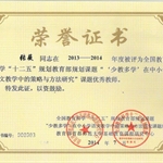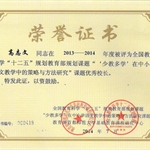在本届年会上,我校课题组通过近两年的研究,取得了丰硕成果。我校被全国教育科学“十二五”规划教育部规划课题“少教多学”课题组评为”优秀实验学校,高志文校长、张润林副校长被评为优秀校长;吕惠兰老师被评为优秀学术指导,应总课题组邀请担任了本届“教育艺术杯”语文课堂教学评委;张薇、徐潇、肖霜杰老师被评为优秀实验教师;教师论文、教学设计等获一等奖11篇,有十位教师获优秀指导教师一等奖;我校学生参加课题组以”爱”与”梦”为主题的作文大赛,有九十六名同学喜获一等奖。