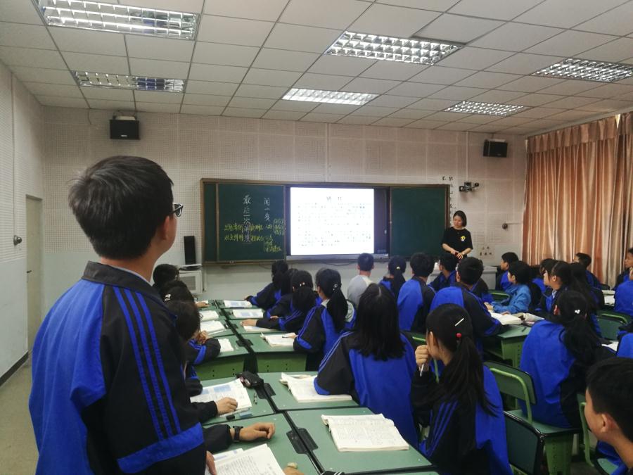 3、课后评课环节,本堂课得到了评委老师的高度赞扬:“这堂课可以打到满分,既落实知识点,又活动充分,更明显感受到学生真正的投入,让听课老师都很认真在听”;“最后闻一多牺牲资料的补充,学生很有感触,为后面的起立齐诵做足了情感铺垫,是整堂课最大的亮点”;“从学生朗读素养可以看出谢娟老师功夫在平时,平时课堂注重对学生朗读能力的训练”;“谢娟老师很注重探究与活动的契合,且这种契合不仅在本堂课上体现,甚至还延伸到课下的读书活动,非常好”······              (语文组)
