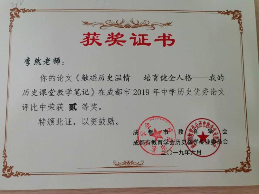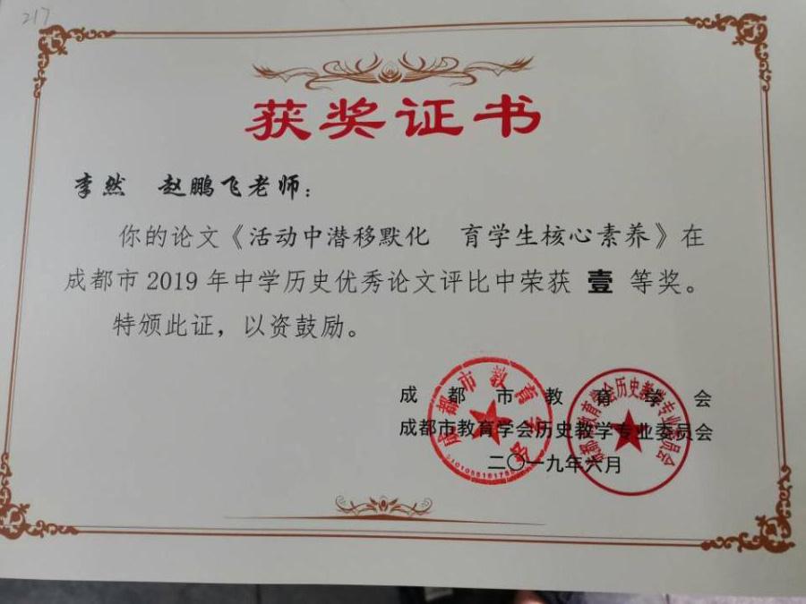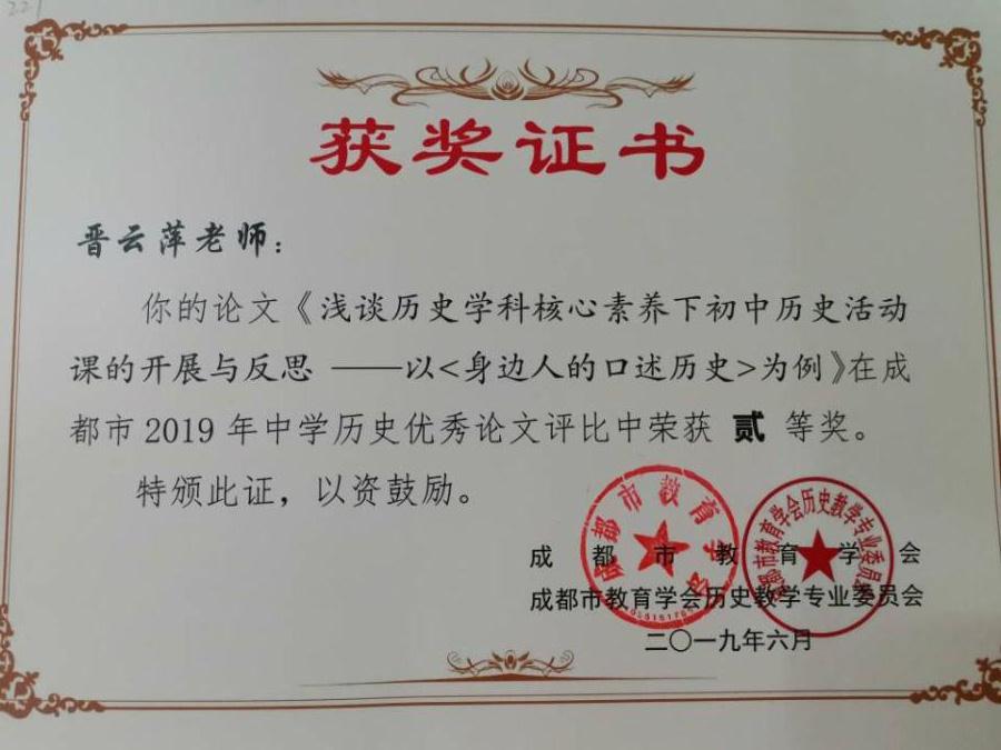 成都市2019年中学历史论文评选传捷报