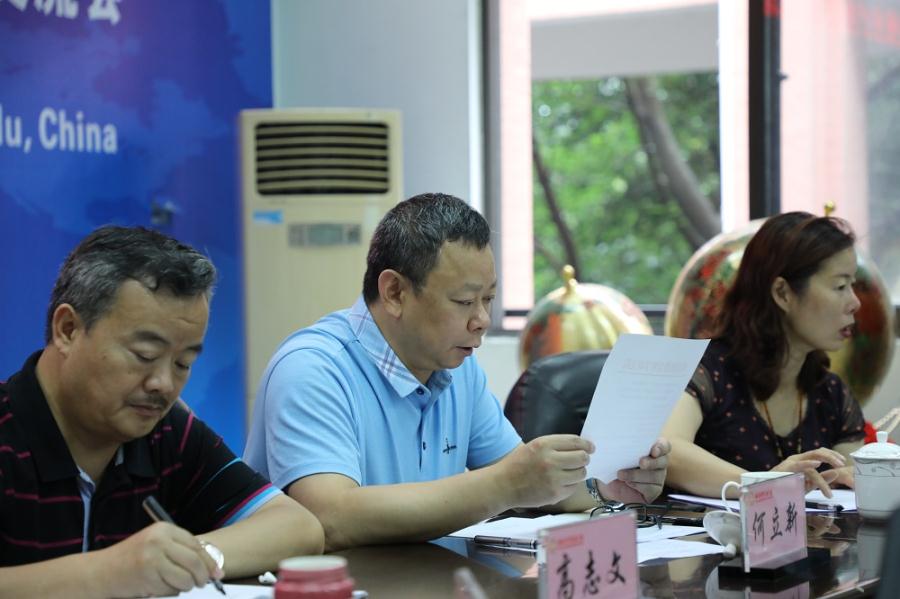 四川省教育科学研究院研究员何立新、四川师范大学教育科学学院教师靳彤、成都市教育科学研究院研究员戴宏、成都双流中学实验学校校长高志文、成都棠湖外国语学校初中部校长助理刘勇、双流区语文教研员李艾璘莅临本次会议,到场参会的还有承担“群文阅读”之下三大子课题项目的全体研究教师。会议由我校语文教研组组长付兵主持召开。