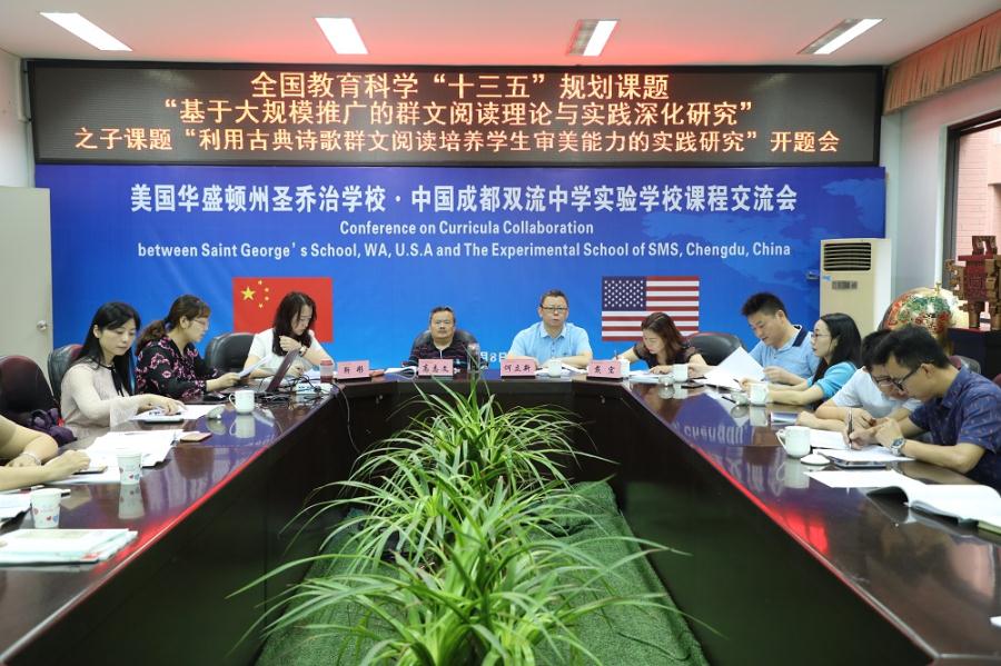 随着语文教育教学改革的不断深化,双流中学实验学校的语文教师们向着课改最前沿不断迈进。2019年6月25日,学校杨雪梅语文名师工作室迎来了全国教育科学“十三五”规划课题之子课题“利用古典诗歌群文阅读培养学生审美能力的实践研究”开题会。工作室的老师们自本学期初便开始广泛阅读群文阅读相关专著,准备开题会的各项资料,以积极的状态期待专家的指导和点评。