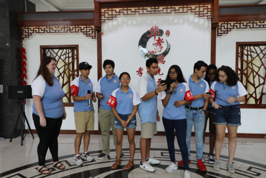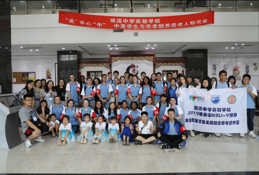 二、7月17日下午32名美国学生们,来到双流区华孝颐养居,进行社区服务活动。本次社区服务的内容分为三个部分:一、学习中医手部推拿;二、学习有关祝福老人的书法、国画并制作贺卡;三、与老人联欢。