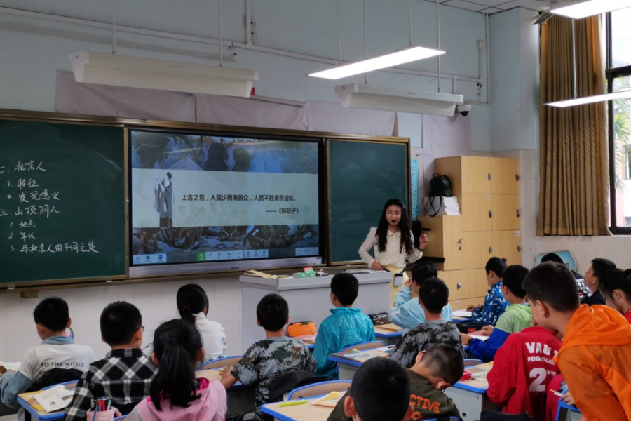 匡老师走进七年级七班,随堂听取了历史组青年教师胡敏霞新授课—“我国境内远古人类”。胡老师结合七年级学生的身心特点,利用希沃白板5精心制作了课件,用有趣的漫画和精彩的课堂游戏点缀课堂,让课堂赋予生机和活力,实现了信息技术与学科课堂教学的有机结合,得到了匡老师的赞赏。