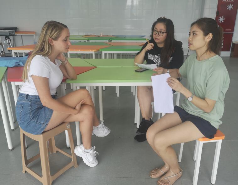 7. 8月1日,地区联系人见面会。主要内容:1、发放调查问卷2、询问同学们周末都干了什么。3、讲述了白蛇传的故事。4、给同学们讲了汉字的发展历史。