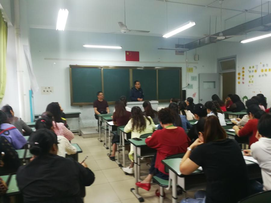 安全处邓主任对全体生活教师进行团队建设和教师责任心方面的培训,他特别提到,要学会做一个善良的人,如关心自己孩子一样关心学生,做一个有爱心的人,心胸开阔,维护学校利益,维护团队利益,做一个有用的人,提高工作技能,努力做好学生工作。