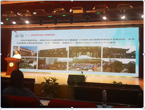 会上我校陈国华主任作了题为“基于关键能力培养的初中研学旅行课程的开发与实施”的专题发言,细致而全面地介绍了我校自建校以来如何校本化开发并实施省内、省外及境外的研学旅行课程,获得在场几百名参会教师的一致好评