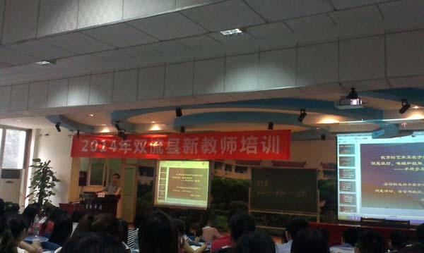 819日,双流县教育局领导以及全体新教师齐聚棠湖中学第一阶梯教室,2014年双流县新教师培训正式拉开帷幕。在开班典礼上,领导们对所有新教师表示热烈的欢迎以及诚挚的祝贺,并提出对未来优秀人民教师的殷切期望。县人才交流中心教育分中心主任江光智进行了新教师工作安排,四川省特级教师、双流县名教师工作室导师黎国胜为我们开展了《阅读助我成长》的精彩讲座。黎老师以自己一生的实际教育历程为例,教导新教师要为胜任工作而读书、为成就事业而读书、为追求卓越而读书。