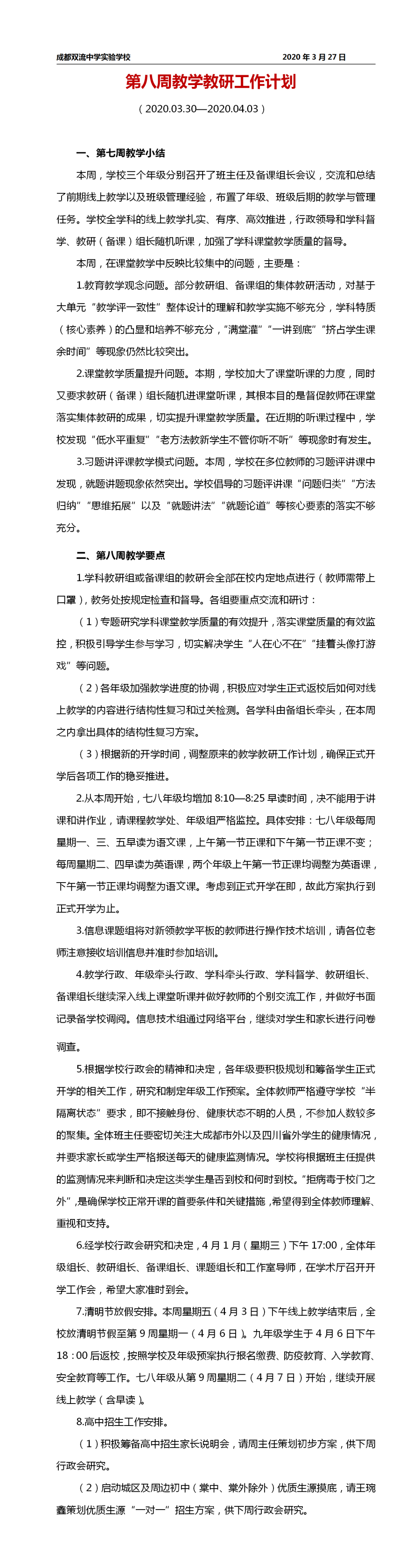 转发:双流区研培中心初中室2020年3月学科研培活动安排