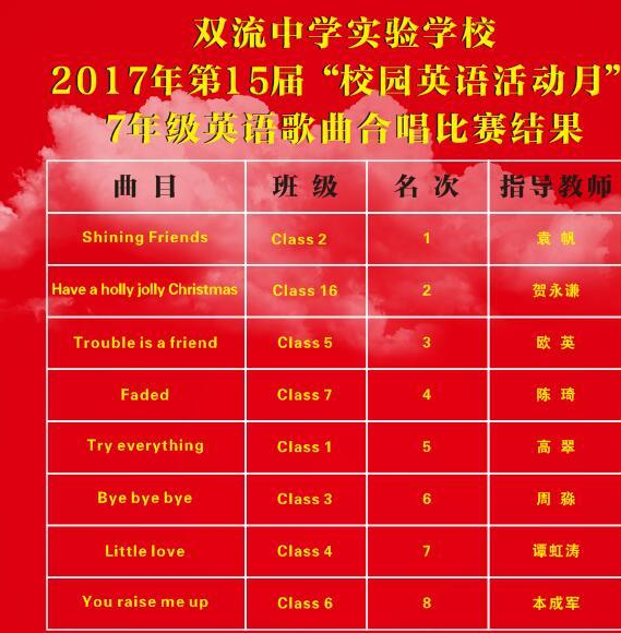 2017第15届“校园英语文化活动月班级合唱大比拼”