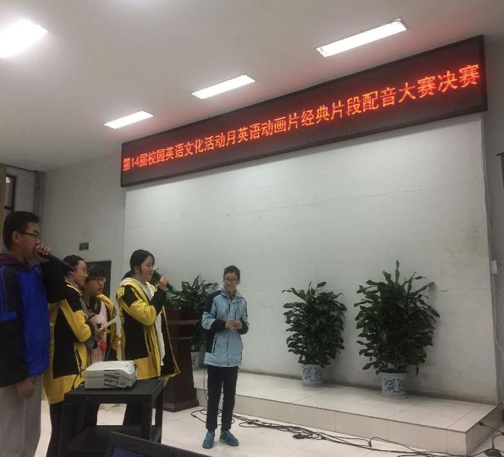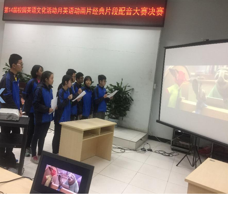 126日下午6:00,第14届“校园英语活动月”9年级经典英语动画片配音比赛在学校学术演讲厅举行。由于九年级的同学学习时间紧迫,本次只有英语班6个班参赛。同学们对《疯狂动物城》、《美女与野兽》等经典动画片的演绎,展现了同学们在平时的英语学习过程中对语言素养的训练。