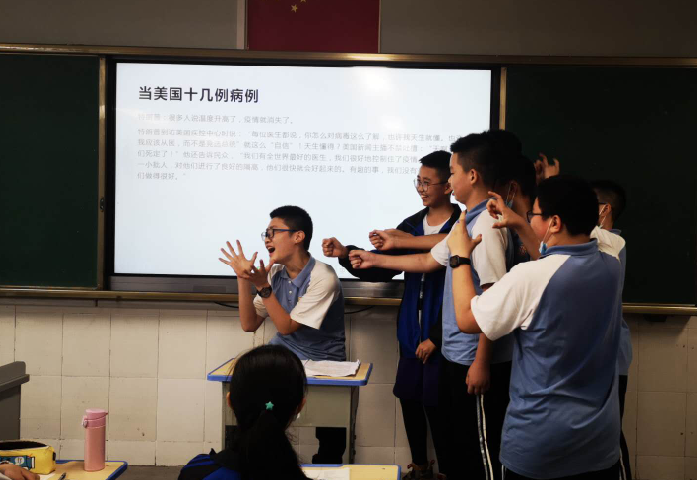 网课期间国际理解教育课题组教师就在线上开始研讨,本学期在疫情这一大环境下如何开展国际理解教育。我们认为在此特殊时期,学生更应该多角度了解疫情的变化,直观建立人类命运共同体的概念。为此,全课题组老师群策群力,因“势”制“课”,开发、设计新课题---“新冠肺炎疫情中的国际理解教育”,并在七、八年级全面开展。