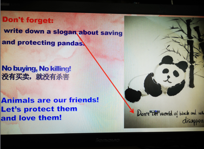 众所周知,如今大熊猫的数量越来越少,保护熊猫是一个世界性的课题,需要全世界人民的共同努力。作为一个全球性的问题,需要我们每个人积极参与,而动物保护意识更需要广泛普及。在本节课的最后,每位小老师都在自己画的熊猫上,贴上了一句呼吁大家保护熊猫的小标语,相信通过这节课画熊猫的学习,让美国学生们在更加了解大熊猫的同时,也能积极参与到保护大熊猫的行列中来。本节课同时也体现了我校国际理解教育的自然维度,就是统筹人与自然的和谐发展,促使青少年学生重返自然之家,在与自然丰富多彩的交往中践履笃行保护环境、拯救地球的坚定信念,发展对自然的生态意识和伦理情怀,提升自身保护自然的实践能力,为全人类的可持续发展做出应有的贡献。