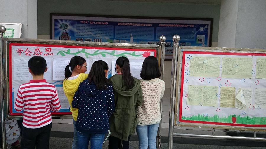 开学以来,我校德育处组织全校学生开展了“学会感恩”征文活动。国庆节之后,收集各班优秀作文,通过学校的严格挑选,评选了一批优秀征文并制作成展板面向全校学生进行展示,对全校学生进行了一次感恩教育。