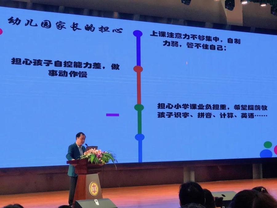 紧接着小学部谢强校长以“幼小衔接”为主题分享了什么是幼小衔接、幼小衔接的误区、小学一年级该注意哪些能力的培养,在肯定荣汇“家人”们有着很高教育素养的同时,也对目前社会就幼小衔接存在的普遍问题做了剖析,他希望孩子的童年更像旅程而不是竞赛,希望爸爸妈妈们多给孩子自由、健康、阳光。