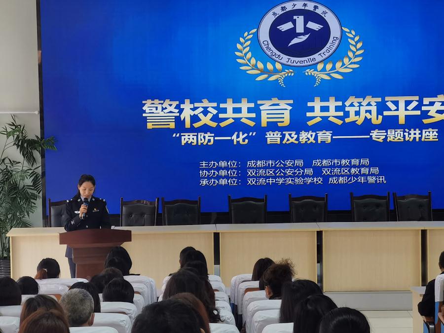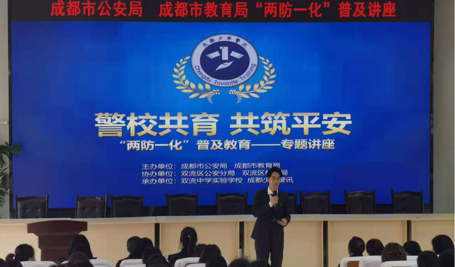 为进一步加强青少年心理安全建设,保障校园平安。2020年11月13日,由成都市公安局、成都市教育局主办,双流区公安分局、双流区教育局协办,成都少年警讯、双流中学实验学校承办的“两防一化”普及讲座在双流中学实验学校举行。本次讲座还向全区广大教师、学生和家长群体进行实时直播。
