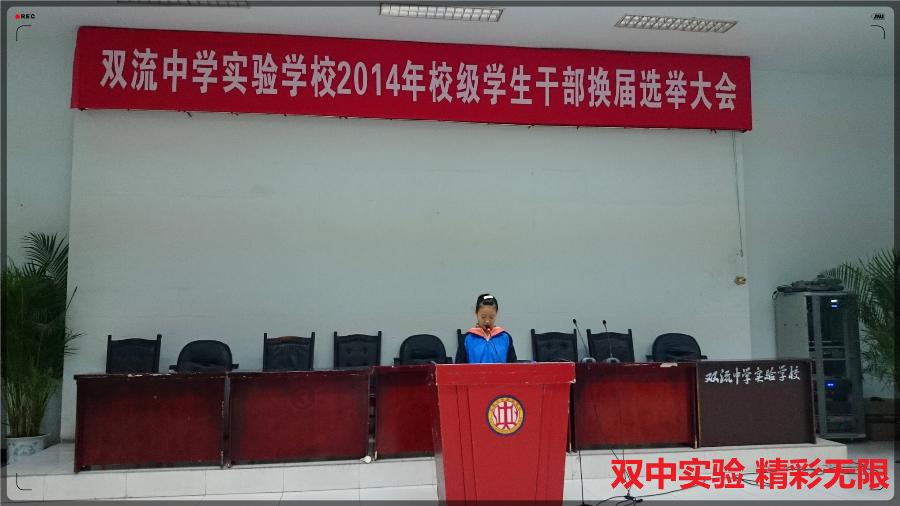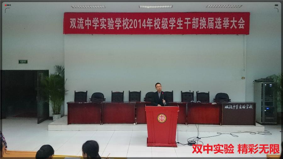 大会由德育处学生工作组王俊老师主持。首先,在学生工作组全体老师、七年级和八年级全体学生干部、八年级各班班长和团支书的见证下,二十四名八年级学生干部进行了他们的竞选演讲。接下来,团校委书记叶平老师发表了重要讲话,对2016届全体学生干部的付出与贡献作出充分肯定,并对下一届学生干部给予了深深的鼓励和希望。