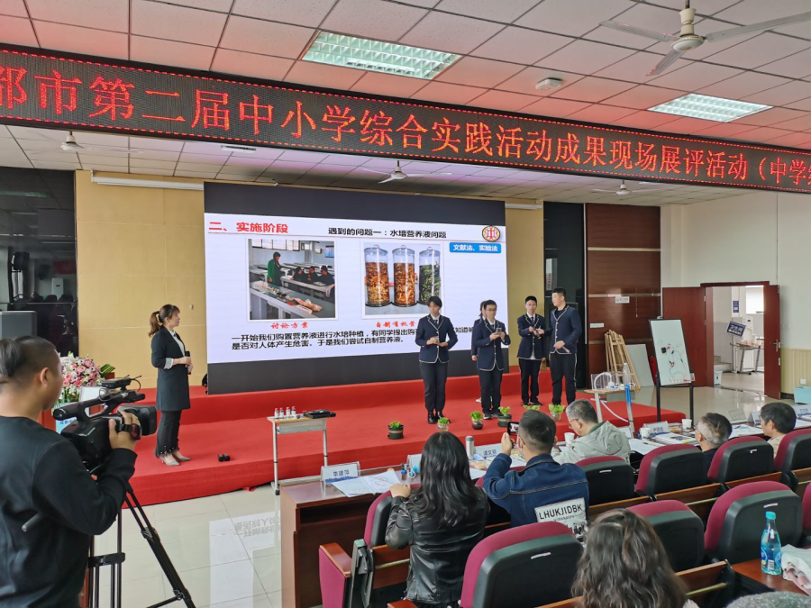2020年11月20日,我校方艳秋老师的《阳台土培与水培种植实验探究》在成都市第二届综合实践活动成果展示汇报中获得成都市一等奖,该课题展示汇报以小组研究性学习课题的问题探究为主线,以三段六环模式展开,层层深入不断递进,师生精彩的舞台表现力,自信、阳光,彰显出了双中实验校综合实践活动课程改革的实践育人成效。以在生活中发现问题土培植物存在的问题引入课题,开展了自制有机营养液,水培与土培对比实验探究,发现实验现象土培蔬菜叶子更绿,在老师的引导下思考什么原因?开展了纸层析法提取叶绿素实验,以及不同营养元素对豆苗生长的实验探究,为了解决浇水,而自制浇水器的过程,课题体现出学生参与过程,思维的生成过程,注重学生参与,在解决课题研究中学生真实遇到的问题,是如何解决,思考的过程。整个课题的开展注重在潜移默化中向学生传递科学探究的方法,科学家的素养,以及对学生发现问题,解决问题方法的指引。典型的研究性学习案例,带领学生走向深度学习,达到理解教育目的,改变了传统教育教与学方式,弥补了学科教学重视知识传授,缺少实践活动的不足,实现实践育人的目的,是学校坚持走素质教育的成果。得到与会专家的肯定,彰显了综合实践名校的风采!