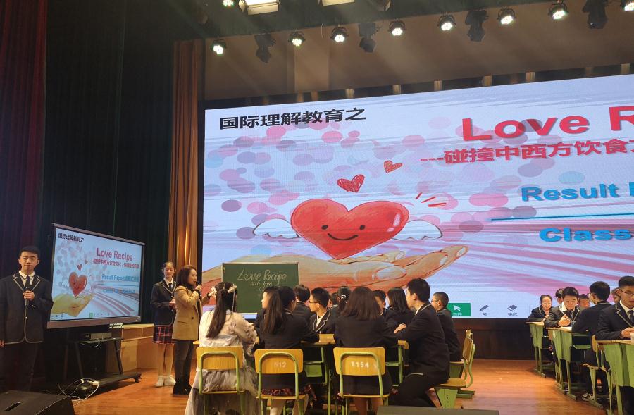 随后,双流中学实验学校初中部名优教师曹旸老师带来《Love Recipe——碰撞中西方饮食文化,传播爱的讯息》的国际理解教育成果汇报课。本课题基于八年级英语教材中关于食物制作的话题,结合中学生的认知水平,通过带领学生回顾课本上所学的中西方饮食种类、食物制作的原材料及步骤,将食物制作的话题具体化,鼓励学生充分发挥想象力与创造力利用同一种食材,制作中西方不同的食物,通过课程设计引导学生意识到“父母的爱”并“感恩父母”。最后为父母设计一份爱心食谱(love recipe)并利用新年节假日在家给父母动手制作爱心食物,表达自己对父母的爱。