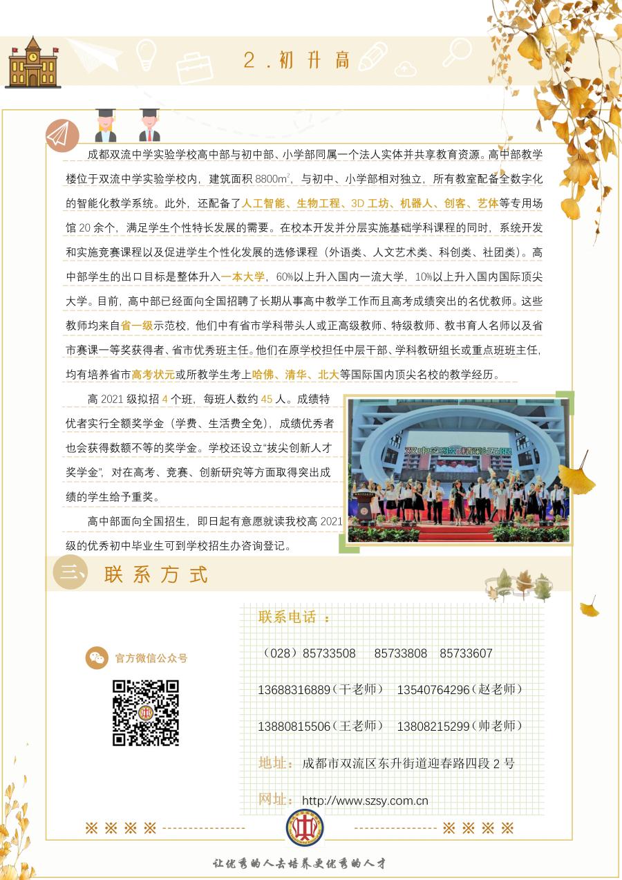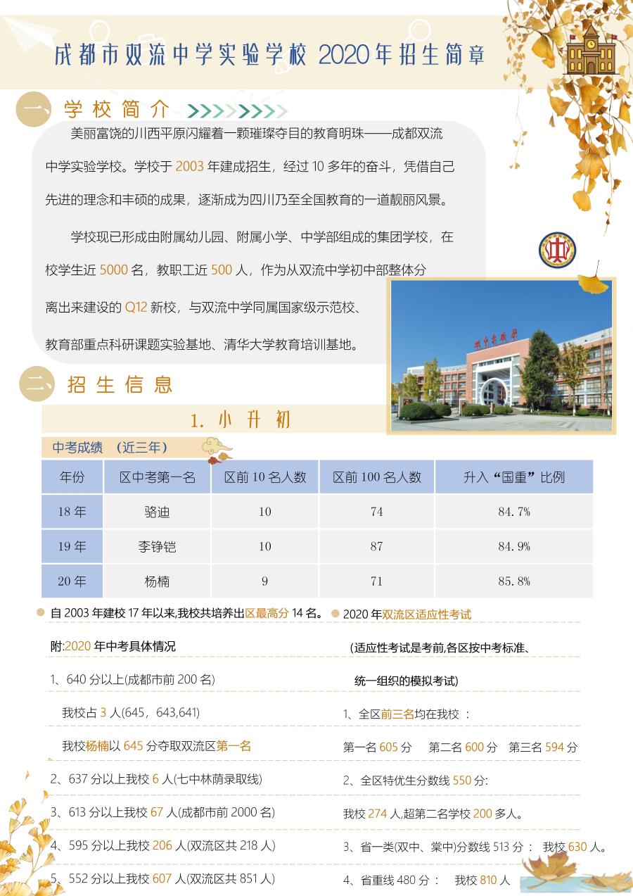 成都市双流中学实验学校2020年招生简章
