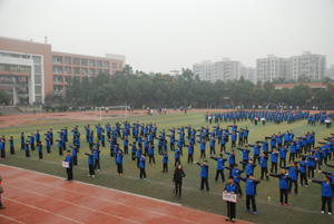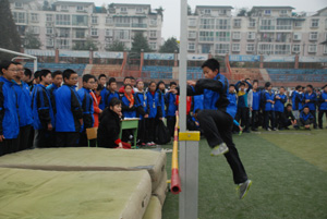 双流中学实验学校2013年冬季综合运动会在我校田径场顺利举行。比赛共设6个单人项目,3个集体项目。包括男女100米、400米、男子1000米、女子800米跑、跳高、跳远、实心球,广播体操决赛、 8字跳绳,50米迎面接力跑等项目,七、八年级二千多名学生参加了此次运动会。