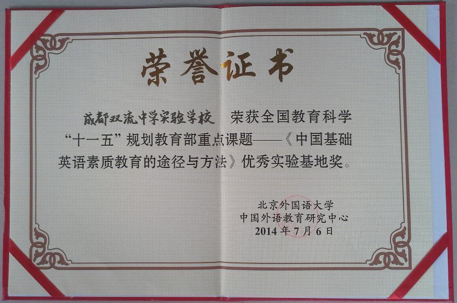 月,我校被评为全国“十一五”规划教育部重点课题——《中国基础英语素质教育的途径与方法》优秀实验基地。