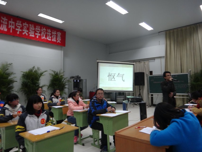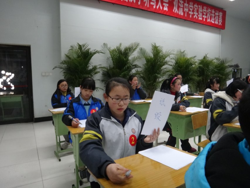“2014年中国汉字听写大会”双流中学实验学校选拔赛决赛进行时,经过两轮选拔产生的22位七、八、九年级优秀选手展开激烈的角逐,他们为学校代表队的六个席位而战。22位选手分为5组,决赛分四轮进行,每轮淘汰若干名选手(第一轮淘汰5名,第二轮淘汰5名,第三轮淘汰3名,第四轮淘汰3名),晋级成功的选手将进入下一轮比赛。淘汰时如遇有并列分数,则在并列选手中进行一次“抢位赛”。在这场高手与高手的较量中,选手之间竞争异常激烈,场面异常精彩,真可谓高潮迭起,扣人心弦。经过80分钟的鏖战,六名选手披荆斩棘,终于冲出重围,凭借扎实的语文功底,优秀的心理素质和超群的现场发挥最终站稳了学校代表队的六个席位。决赛产生的六位顶尖高手将作为双中实验校代表队种子选手出征3月4日至6日举行的全县比赛,若晋级成功,他们将参加市、省,乃至全国比赛。衷心祝愿双流中学实验学校代表队能积极备战,一路凯歌,战出双中实验学校的实力,拼出双中实验学子的风采。     (语文组:付  兵)