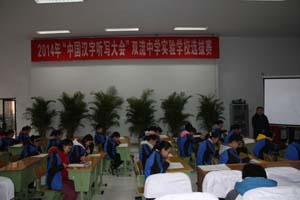 为进一步弘扬中华民族传统文化,提高中小学生现代汉字听、说、读、写能力,大力推广和规范使用国家通用语言文字,贯彻落实《国家中长期语言文字事业必革发展纲要(2012——2020年)》,根据《国家语委关于开展第二届“中国汉字听写大会“参赛队伍选拔工作的通知》和《成都市语言文字工作委员会成都市精神文明建设办公室成都市教育局成都市广播电视台〈关于开展“中国汉字听写大会”成都赛区选拔赛的通知〉》要求,由双流县语言文字委员会、双流县精神文明建设办公室、双流县教育局主办,双流县教育研究与教师培训中心承办的“中国汉字听写大会”双流中学实验学校赛区选拔赛如期在我校举行。