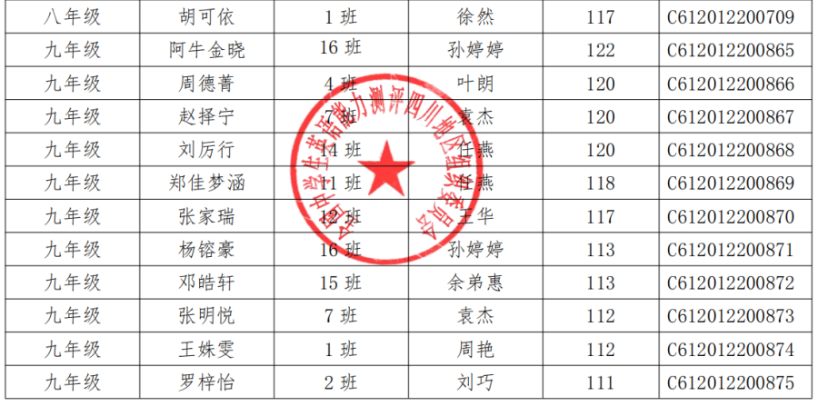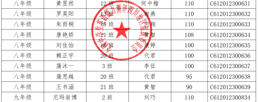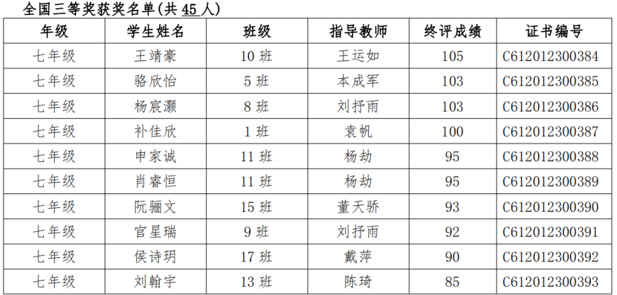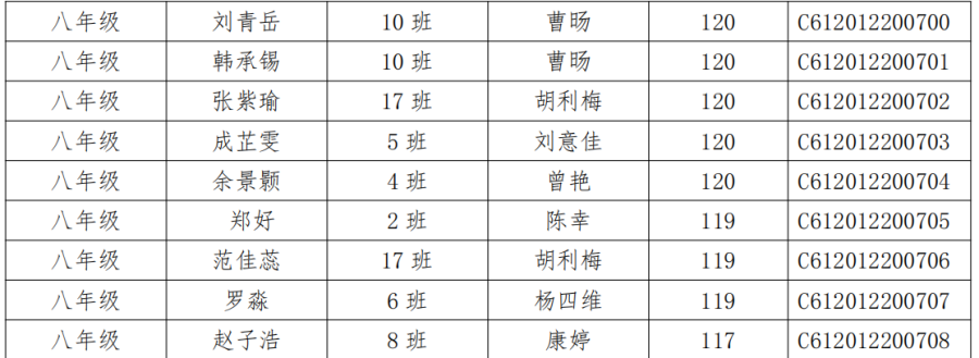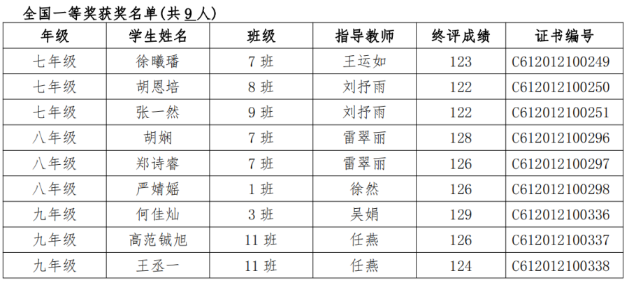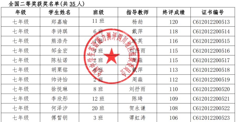 2020 年全国中学生英语能力测评双流中学实验学校测评点全国奖获奖名单