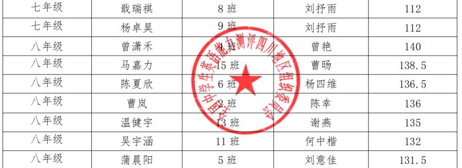 2020 年全国中学生英语能力测评双流中学实验学校测评点省级奖获奖名单(2)
