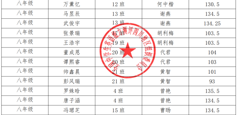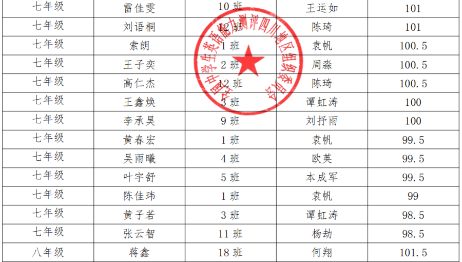 2020 年全国中学生英语能力测评双流中学实验学校测评点全国奖获奖名单