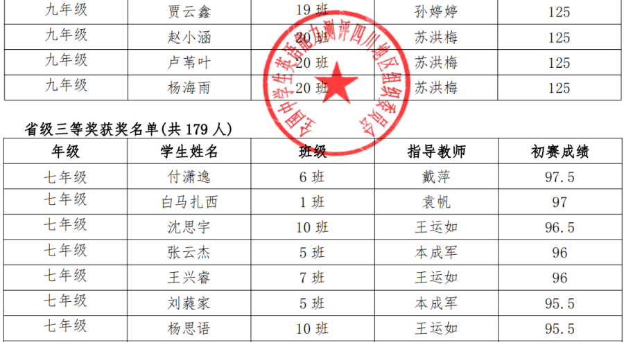 2020 年全国中学生英语能力测评双流中学实验学校测评点省级奖获奖名单(1)