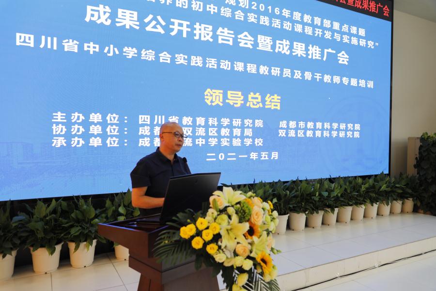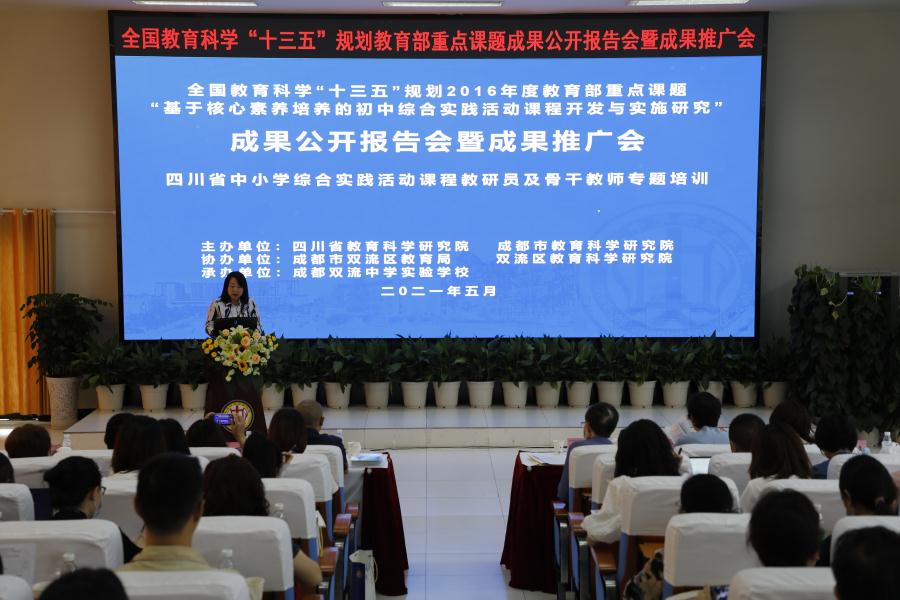 2021年5月30日,成都双流中学实验学校独立承担的全国教育科学“十三五”规划2016年度教育部重点课题“基于核心素养培养的初中综合实践活动课程开发与实施研究”(课题批准号DHA160363)成果公开报告会、成果推广会暨四川省中小学综合实践活动课程教研员和骨干教师专题培训在成都双流中学实验学校隆重举行。