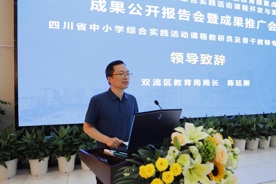 双流区教育局陈廷刚局长在致辞中指出,双流区委、区政府高度重视教育工作,始终把教育摆在优先发展的战略位置。双流教育以“优质、特色、多样”为发展目标,扎实推进课程建设,致力打造一批市民家门口的好学校,促进双流区教育高质量发展。双流中学实验学校作为双流教育的一张名片,在课程改革、课题研究、课程建设、课堂教学等方面发挥了示范引领作用,双流中学实验学校的课程改革成果“初中综合实践活动课程序列开发与常态实施”被教育部基础教育课程教材发展中心评为“基础教育课程改革典型案例”,获四川省人民政府优秀教学成果一等奖和国家级优秀教学成果二等奖。