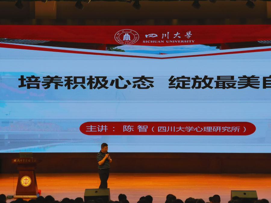 随着中考临近,为缓解初三年级学生考前紧张情绪和心理压力,帮助同学们以良好的积极心态面对中考,6月1日晚,我校邀请四川大学心理研究所主任陈智教授在学术厅举办以“培养积极心态,绽放最美自己”为主题的心理辅导专题讲座。初三全体师生参加了本次讲座,活动由德育处王俊老师主持。
