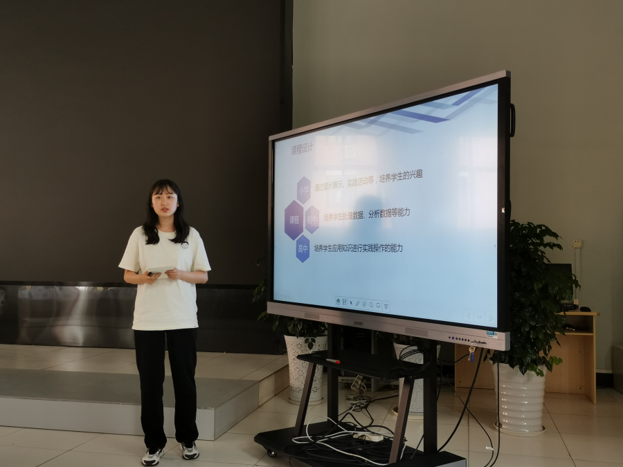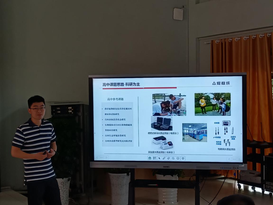 李春燕老师发言完毕后,众耀数诚科技有限公司的张总对其公司进行了介绍,并且讲解了其技术团队对小初高三个阶段课程方案的设计构想和解决方案。