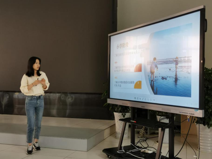 接下来是由我校一体化课程开发组的四名教师,分别是物理陈晨老师、生物陈雪老师、化学苏丹老师以及科学杨荟民老师对其本学科一体化课程的初步构想进行了汇报。