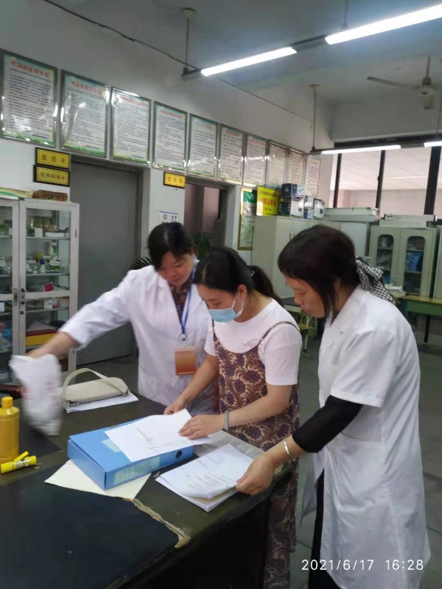 我校卫生保健老师杨德慧、饶小燕共同向周冬琴医生汇报了学校卫生保健的常规工作。周冬琴医生高度重视我校卫生工作的开展情况,还走到各教室查看了晨午检表,对各班教室防疫物资框的配备工作表示很满意。