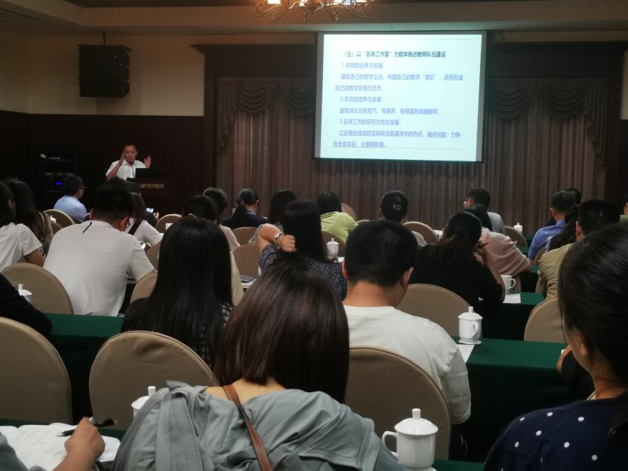 罗晓章副校长作题为《初中育人质量提高的校本表达与路径》的专题发言。罗校长的发言从初中育人质量提高的规范要求、校本表达、校本路径三个方面展开。在校本路径部分,罗校长特别强调,教师育人观念要落实好“三个转变”:更新课程教学、师生发展、教学质量等育人观念,从“教书”向“育人”转变;在共同基础上的差异发展,从“划一”向“可选”转变; 提高“学习力”,从“外压”向“内生”转变。各教研组、备课组要集体教研为抓手,使之成为学习共同体、研究共同体、成长共同体。各名师工作室的发展要立足于我校课改的实际和当前课改中的热点、重点问题;不断扩大在全市、全省、全国的知名度和影响力。